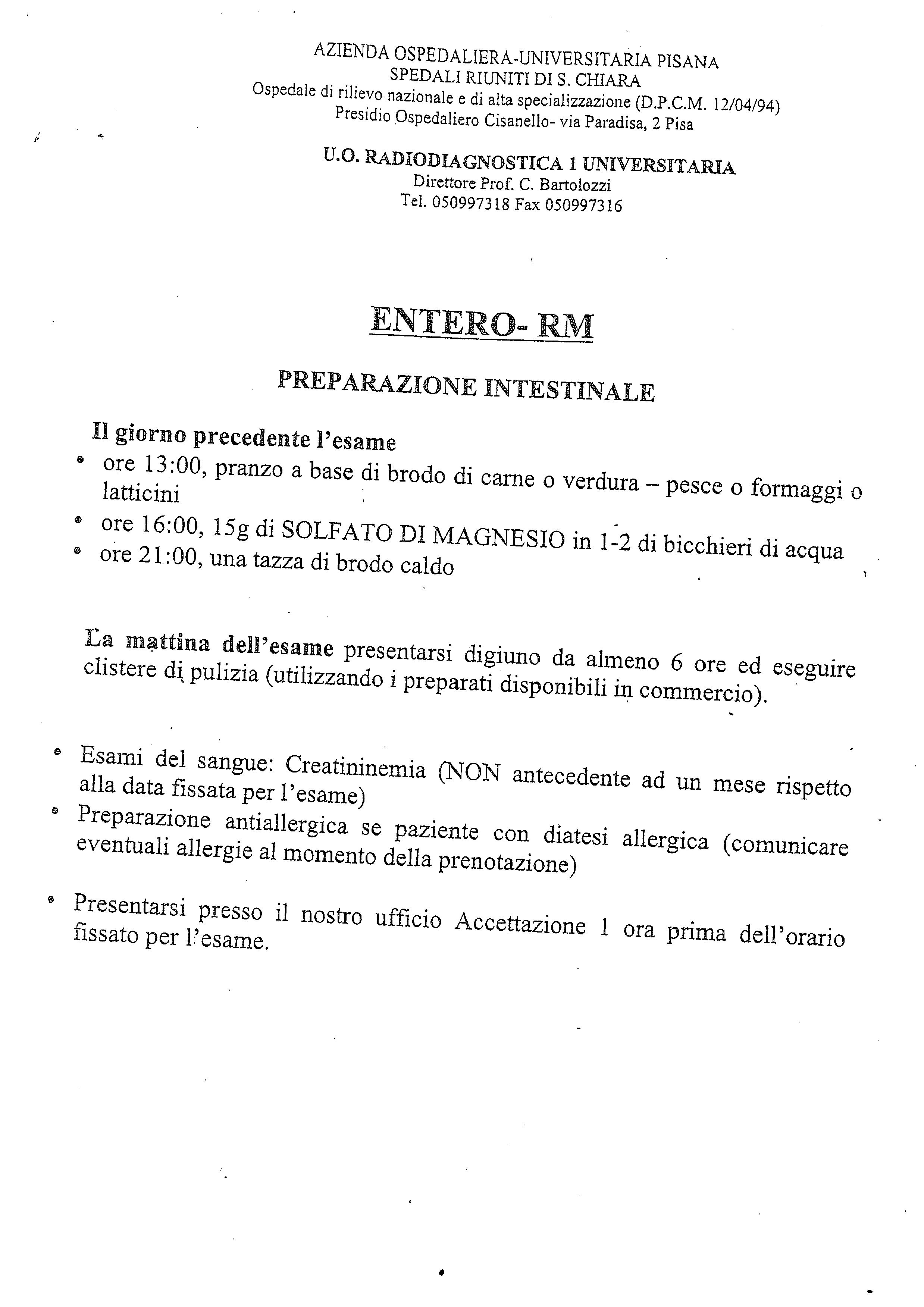 Diagnostica per immagini Preparazione esami radiologiciDownload Preparazione Ecografia dell’AddomeDownload Preparazione mezzo di contrastoDownload Desensibilizzazione mezzo di contrasto AOUPDownload Preparazione Entero-RMDownload Prevenzione nefropatia da mezzo di contrastoDownload Delibera OsteoporosiDownload Dat ScanDownload Preparazione Colonscopia VirtualeDownload
